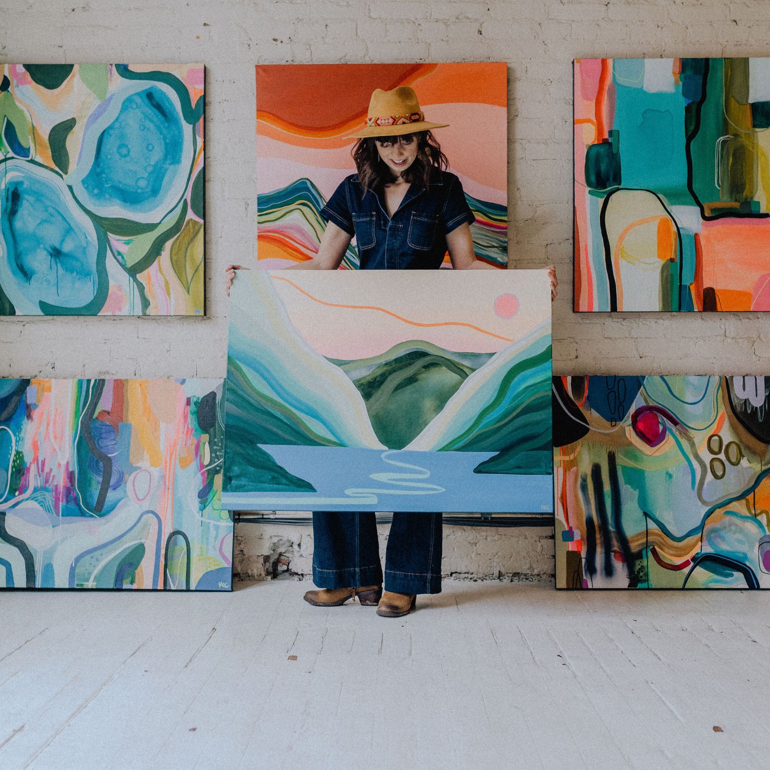 In 2016, I graduated from SPU with an art degree and left the Seattle area one year later to begin a new world in Bend. The high desert landscape, bright warming sun and lifestyle called me. Today I work full-time in my artist practice making art daily in my studio. Art is my diary, story and expression of the subconscious. I am overjoyed to bring this art to life. My hope is that my work infuses your day with joy and love.