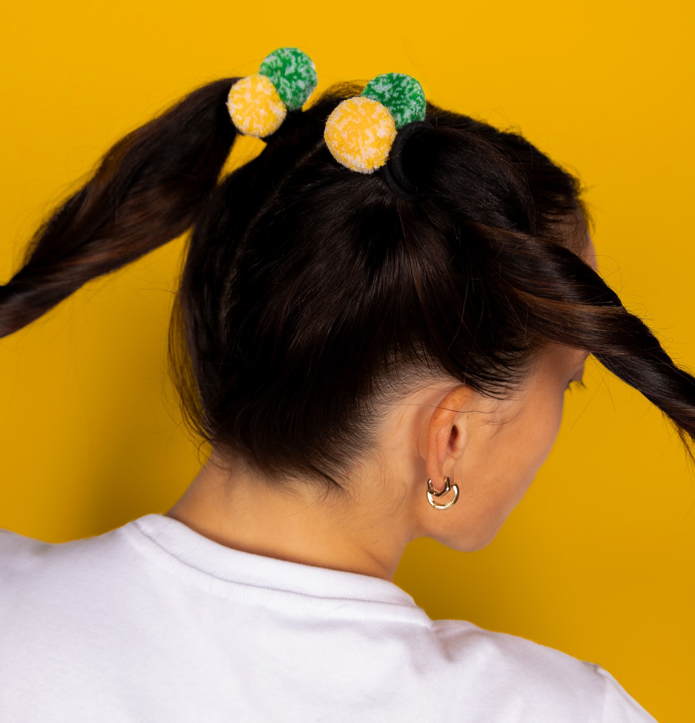 When we realized that our kids’ sports teams needed more playful, practical, and well-made accessories, we decided to introduce pom-pom socks to a new generation. Our signature ankle socks have two poms instead of one—doubling their fun, color, and style while preventing the socks from slipping into shoes. For those who like higher socks, we’ve created a crew sock whose scalloped lines represent poms. We also offer hair ties with double poms and have other products in the works.