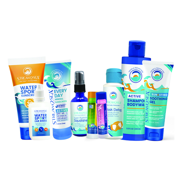Autumn is an entrepreneur, cosmetic chemist, scuba diver, animal advocate and ocean warrior. She grew up in Sarasota, FL and graduated from Eckerd College with a B.Sc. in Chemistry and environmental geology. After spending 15 years as a cosmetic chemist, she noticed a sunscreen slick coming off a group of snorkelers while diving in Palau. She observed with increasing frustration the divers and crew bathing on deck after every dive – the soap, sunscreen and conditioner residues washing right overboard into these waters with some of the most beautiful reefs in the world. As a cosmetic chemist, she knew that we could do better for our oceans, reefs, and ourselves. She came home from the trip determined to create a performance-based product line that would be safer for us and for our waters. In 2015, she launched Stream2Sea. 10 years later, all formulas remain tested and proven as safe as possible, and include the only sunscreen, Coral Care, that’s proven to actually nourish reefs. When Autumn’s not formulating new products, in the water or talking about protecting it, she enjoys spending time with her life partner John, their 6 dogs, 11 ducks, and 65 chickens. If you ever come by the warehouse, you will most likely leave with not only sunscreen, but a dozen eggs as well.