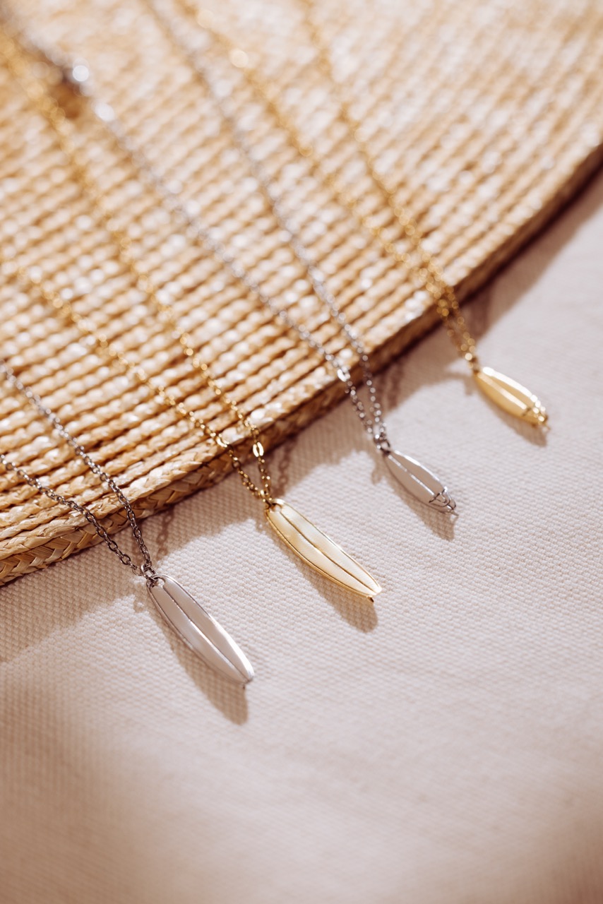 • Beach-lifestyle aesthetic: from minimalist metals to ocean-inspired textures, every piece is made to complement the board, the waves, and your off-duty style.